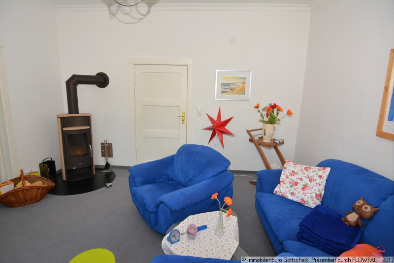 Die Villa verfügt über eine Einliegerwohnung im Obergeschoss, diese verfügt über eine Küche einen Wohn-Esszimmer ein Bad und ein Schlafzimmer mit Einbauschränken und würde im Jahre 2012 erst modernisiert. Die hochwertig ausgestattete Küche der Hauptwohnung im Erdgeschoss bietet alles von großzügiegen Arbeitsflächen bis zu modernen Elektrogeräten. Das gemütliche Wohnzimmer hat Verbindung zum Esszimmer und Zugang zur Süd-West Terrasse. Die Etagen sind mit einer Vollholztreppe verbunden. Im Kllergeschoß befindet sich ein Gästebereich und Platz für Werkstatt, Hobby und für eine Sauna. Die Terrassenanlage und der Balkon sorgen für Entspannung in Sonne oder im Schatten durch Markiesen. Schuppen und Garage bieten als Nebengelass viel Platz. Das Haus wurde 2000 grundsaniert und modernisiert und befindet sich insgesamt in einem guten baulichen Zustand. Unter anderem wurde das Dach neu gedeckt, die Elektroanlage erneuert und der Hof und die Wege aufwendig neu gepflastert. - EFH mit Einliegerwohnung in Massivbauweise - Vollkeller mit Gästebereich - Innentüren Holz - Kamin - EG; Fußböden Auslegware im Wohnzimmer - DG; Fußböden Auslegware und im Bad Fliesen - Bad mit Wanne und Dusche im EG - Bad mit Dusche im OG - gepflasterte Einfahrt - Terrasse - Balkon - HZ Oelkessel - Kunststoff-Fenster - Eingangstür Holz - Nebengelass u. Garage - Schlafzimer mit Balkon