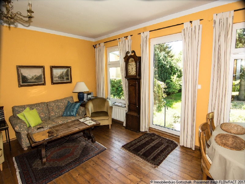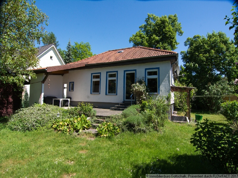 Nur 150 m vom Lehnitzsee und mitten im Grünen, ein Traum für jeden Naturliebhaber, egal ob Angler, Jogger oder Hundebesitzer. Das Haus wurde im Jahr 1932 in Holzständerbauweise in hoher Qualität und ausschließlich unter Verwendung hochwertiger Baumaterialen errichtet und später um einem Anbau erweitert. Die Kellerdecke ist Massiv mit Betondielen ausgeführt, die Innenwände wurden aus Hochlochziegeln errichtet. Es verfügt über einen wunderschönen Garten. Die 110 m² Wohnfläche verteilen sich auf das Erdgeschoss mit Wohnzimmer incl. Terrassenzugang und Wohnküche mit Speisekammer sowie Bad mit Dusche und ein Schlafzimmer. Die Terrasse ist von einer schönen Bepflanzung umgeben. Eine moderne Solaranlage sorgt in Verbindung mit der Heizung für wohnliche Wärme und für warmes Wasser. Im Wohnzimmer ist ein dekorativer Kamin vorhanden. Das gesamte Erdgeschoss z.t. gefliest, zum Kellergeschoß führt eine Holztreppe dort befinden sich ein Wohnraum, Heizungsraum mit Werkstatt, ein Kellerraum mit Aussenzugang und einen zweiten Bad mit Dusche.
